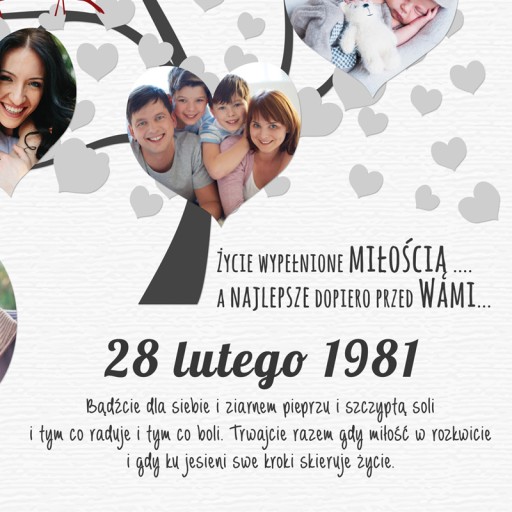 W wiadomości do sprzedającego napisz, że chcesz sam / sama rozmieścić zdjęcia na plakacie i napisz ile ma być serduszek ze zdjęciami NA DRZEWIE. Wyślemy do ciebie wstępny projekt plakatu z drzewem i pustymi - ponumorowanymi sercami. Ty prześlesz nam zdjęcia na maila ze zmienionymi nazwami plików, odpowiedni 1.jpg, 2.jpg itp.