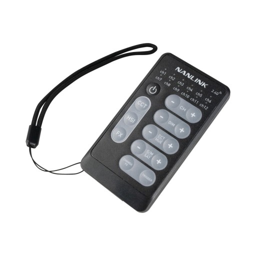 Pilot zdalnego sterowania Nanlink WS-RC-C2 2.4 GHz to wielofunkcyjny kontroler bezprzewodowy, który został zaprojektowany do szybkiej, prostej bezprzewodowej regulacji ustawień. Pilot zdalnego sterowania może regulować ustawienia jasności, CCT, HUE i SAT świateł NANLITE i Nanlux wyposażonych we wbudowane odbiorniki 2.4 GHz z odległości do 32 stóp (10 m).