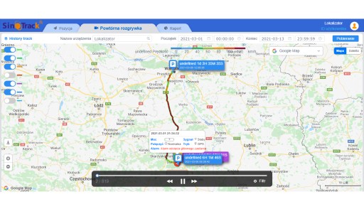 - śledzenie pojazdu na żywo w aplikacji lub na stronie WWW