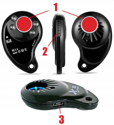 - Posiada diody oraz wizjer do wykrywania szpiegowskich kamer oraz aparatów