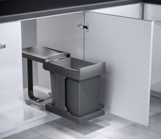 Kosz do segregacji odpadów niemieckiego producenta HAILO. Niewielkie parametry pozwalają na montaż w małych szafkach. Kosz posiada jeden pojemnik o pojemności 20l. Po otworzeniu frontu, automatycznie kosz wysunie się do przodu.
