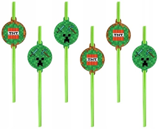 - Urodzinowe słomki proste z zestawu Piksele - 6 sztuk