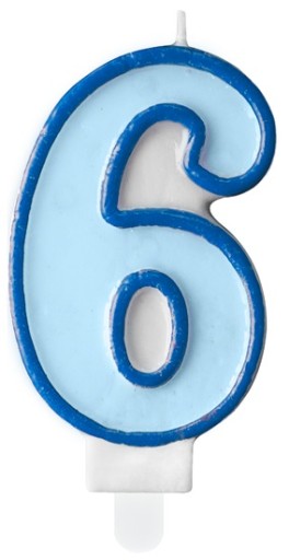 Świeczka urodzinowa Cyferka 6 w kolorze niebieskim