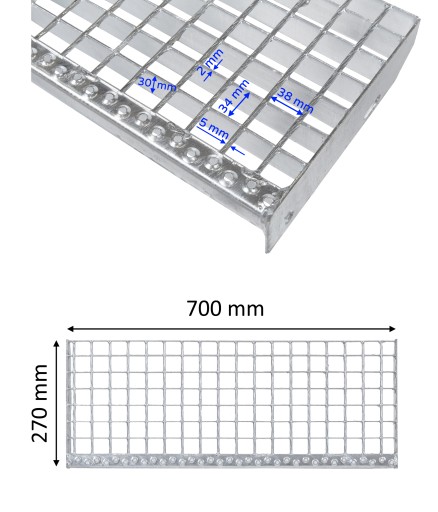 Ступеньки WEMA 700x270 мм | оцинкованный | 30x2 мм | металлическая ступенька, ступени