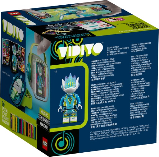 • Zestaw LEGO® VIDIYO™ Alien DJ BeatBox (43104) pomoże Ci zachęcić dzieci do tworzenia własnych teledysków. Znajdziesz w nim minifigurkę Alien DJ-a, akcesorium w postaci płyty winylowej, 14 losowych BeatBitów i dwa specjalne BeatBity.