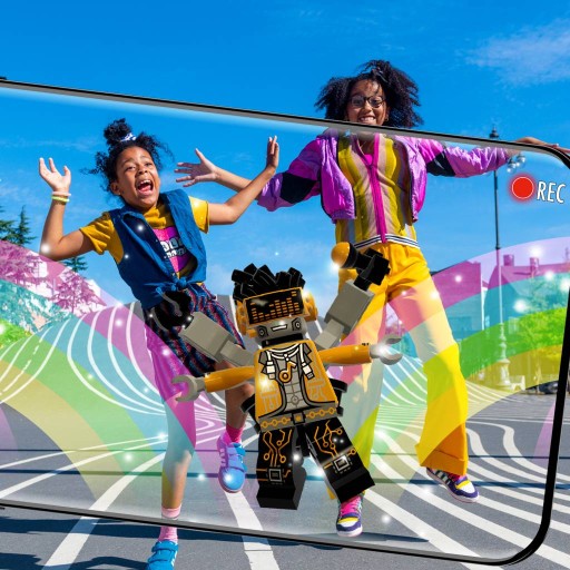 • Pobierz darmową aplikację LEGO® VIDIYO™ i zeskanuj minifigurkę oraz BeatBity z efektami specjalnymi, aby tchnąć życie w postać występującą w nakręconym przez dzieci hip-hopowym teledysku.