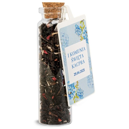 Ciekawy pomysł jako upominek dla gości podczas uroczystości I Komunii Świętej czy też gości innych imprez okolicznościowych jak chrzest czy baby shower. Wysokiej jakości ciekawe herbaty smakowe to z pewnością niebanalny upominek dla naszych gości.