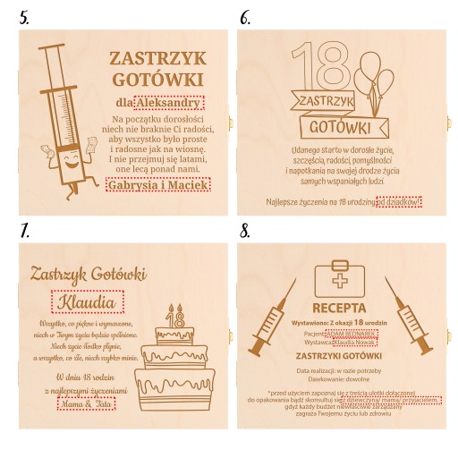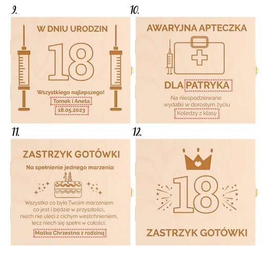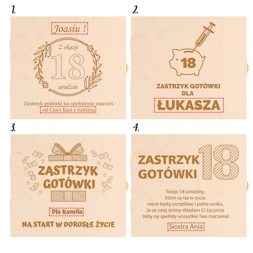 Drewniane, grawerowane pudełko, prezent na 18 urodziny - Zastrzyk gotówki