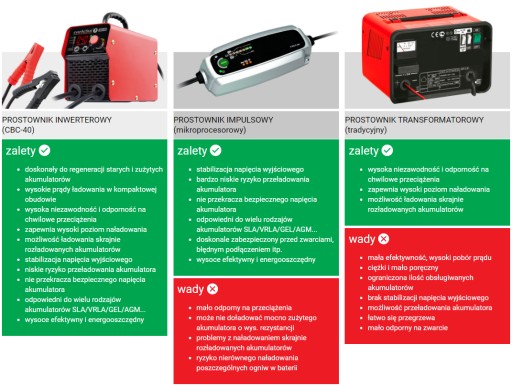 - skuteczne ładowanie i regeneracja skrajnie rozładowanych akumulatorów,
