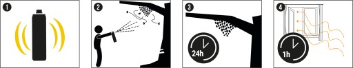 Wstrząsnąć przed użyciem. Likwidowane gniazda owadów obficie spryskać przez około 7 sekund, aby nasączyć je dobrze produktem. Główny strumień kierować w otwór gniazda. W przypadku likwidacji gniazda dużego, zaleca się zastosowanie wydłużonego czasu oprysku - około 12 sekund.