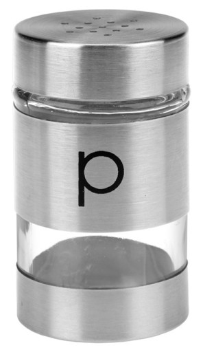 Przyprawnik został wykonany ze szkła oraz stali nierdzewnej.
