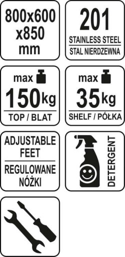 Stół centralny skręcany z półką marki YATO o wymiarach 800(sz)x600(gł)x850(wys).