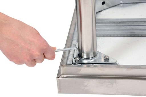 Stół centralny z półką wykonany jest z wysokiej jakości stali nierdzewnej SS201 przystosowanej do stosowania w gastronomii w warunkach intensywnej eksploatacji. Starannie wykonane połączenia spawane oraz gładkie powierzchnie powodują, że jest bardzo łatwy w utrzymaniu w czystości.