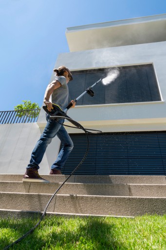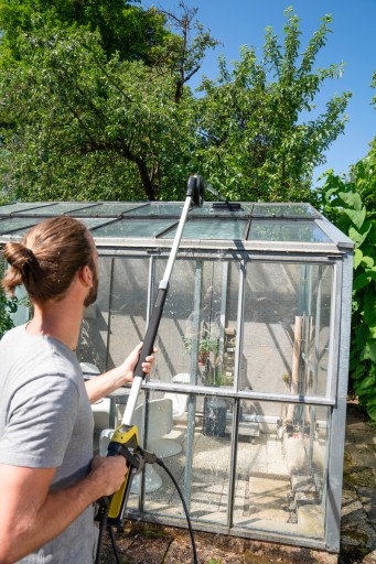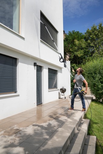 Wysokie ciśnienie oraz nakładka do fasad i szyb zapewniają optymalne czyszczenie. Wyjątkowo skuteczna w połączeniu z teleskopową lancą spryskującą Kärcher.