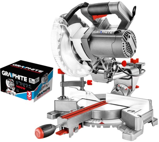 Pilarka ukosowa GRAPHITE (nr ref. 59G800) z funkcją posuwu głowicy, napędzana silnikiem o mocy 1400 W, przeznaczona do precyzyjnego cięcia dużych elementów drewna i materiałów drewnopochodnych. Urządzenie posiada możliwość regulacji wsporników obrabianego materiału, a także opcję szybkiego ustawienia popularnych kątów cięcia. Zakres cięcia kątowego i ukosowego wynosi od 0° do 45°. Pilarka o zwartej i stabilnej konstrukcji, wykonanej ze stopu aluminium, posiada metalową blokadę wrzeciona. Dla komfortu i bezpieczeństwa rękojeść główna urządzenia została pokryta antypoślizgowym materiałem. Precyzyjne ustawienie ciętego materiału ułatwi wskaźnik laserowy zintegrowany z urządzeniem. Istnieje możliwość samodzielnej wymiany szczotek węglowych od zewnątrz. Urządzenie wyposażono w elastyczny i wytrzymały przewód zasilający w powłoce gumowej o długości 3m, dedykowany także do zastosowań profesjonalnych i przemysłowych zarówno wewnątrz jak i na zewnątrz pomieszczeń. W zestawie z pilarką znajdują się: worek na pył, zacisk pionowy do trzymania obrabianego materiału i klucz montażowy. Zgodność z europejskimi standardami zapewnia certyfikat CE. Marka GRAPHITE oferuje szeroki asortyment elektronarzędzi spełniających oczekiwania profesjonalistów.