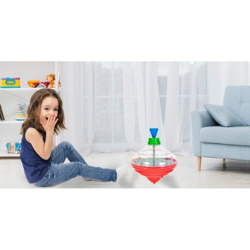 Bączek jest prosty w użyciu. Dziecko samo może naciskać tłoczek, aby bączek zaczął wirować.