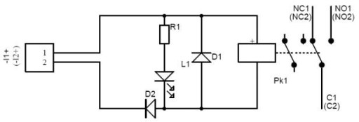- Styki przekaźnika C/NC/NO (wyprowadzenia Ø 2,05mm: AWG 24-12)