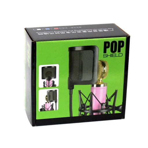 Pop shield to membrana z metalowej siatki przeznaczona do tłumienia tzw. wybuchowych głosek. Stosowany podczas nagrywania sesji wokalnych na mikrofonach pojemnościowych w studiu nagraniowym.