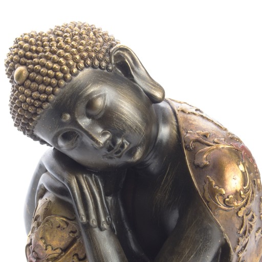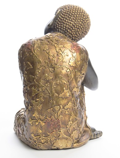 Prezentowana figurka Buddy wspaniale nadaje się jako dekoracja do Twojego domu lub jako prezent dla bliskiej Ci osoby. Wręczona jako prezent ucieszy buddystę czy sympatyka wschodniej filozofii życiowej. Wykonana jest w poliresingu (masy żywicznej wymieszanej z mączką alabastrową), której wierzchnia część pokryta została emulsją w kolorze grafitowo-brązowo-złotym. Figurka Buddy posiada celowe postarzenia i przetarcia.