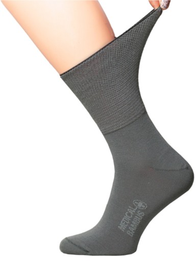 Polskie zdrowotne skarpety MEDICAL BAMBUS - bambusowe skarpetki medyczne z jonami srebra, antybakteryjne, nieuciskowe. Szeroki ściągacz, niecisnący, zaczynający się poniżej kostki pozwala na założenie skarpetki na spuchnięte nogi. Płaski szew zapobiegający uciskowi. Wrabiana, dobrze profilowana pięta. Najwyższej jakości babusowa przędza z dodatkiem elastanu i polipropylenu nadaje skarpetce bardzo dużą elastyczność i zmniejsza ucisk. Dodatek jonów srebra wspomaga antybakteryjne właściwości przędzy bambusowej. Klasa premium. Bardzo polecamy!