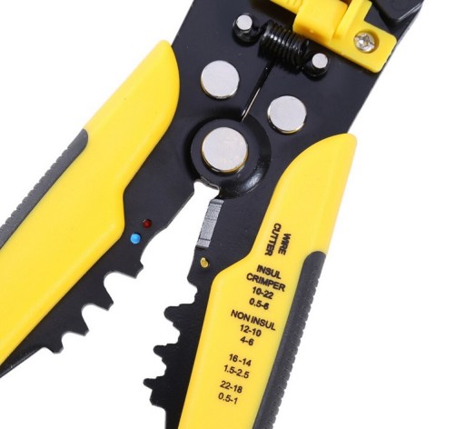 Nasze narzędzie jest bardzo praktyczne i wielofunkcyjne, możesz wykorzystać je jako ściągacz izolacji z przewodów, przecinak oraz zaciskarka końcówek konektorowych izolowanych oraz nieizolowanych. Dodatkowo urządzenie posiada regulowany ogranicznik długości oraz pokrętło, które znajduje się pod szczękami. Za jego pomocą możesz regulować siłę nacisku na izolację. Dodatkowo ściągacz posiada. Posiada automatyczny mechanizm czołowy, dzięki któremu nie musisz wkładać dużo siły w ściąganie izolacji. Przy pomocy pokrętła regulacji w bardzo łatwy sposób możesz dostosować swój ściągacz do grubości przewodu.