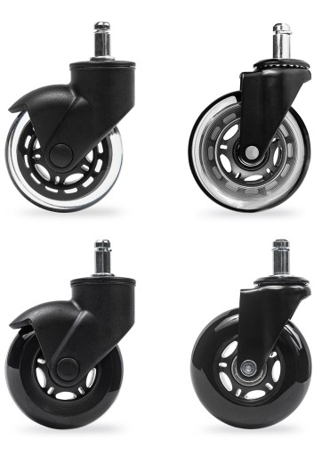 Wymień swoje stare, niskiej jakości plastikowe kółka na nowe kółka kauczukowe, które są trwałe i bezpieczne dla wszystkich podłóg, zwłaszcza drewnianych. Miękkie, cichobieżne kółka wykonane z wysokiej jakości przezroczystego kauczuku syntetycznego z wbudowanymi łożyskami zapewniają niesamowicie płynny i bezgłośny ruch krzesła.