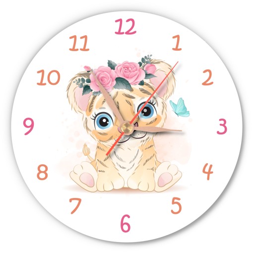 Okrągły zegar ścienny cichy mechanizm tygrysek