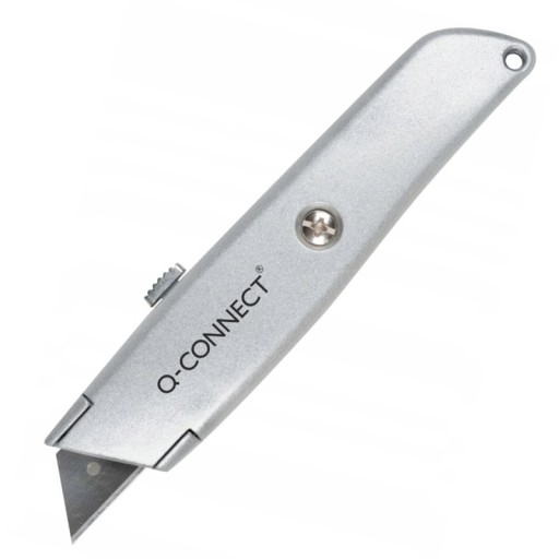 NÓŻ TAPICERSKI Q-CONNECT, METALOWY, Z BLOKADĄ, SZARY
