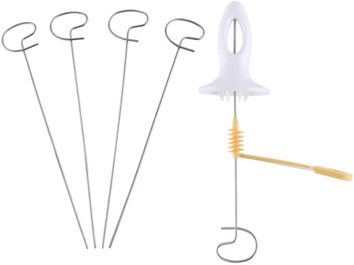 - W zestawie: "Ziemniaczany" zestaw zawiera spiralny wykrawacz z wyjątkowo ostrym ostrzem, masywną rękojeść z haczykami do umocowania ziemniaków oraz 4 szpikulce ze stali nierdzewnej.