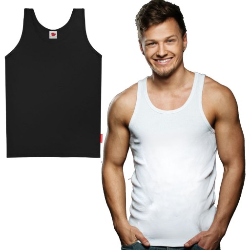 Klasyczna bawełniana podkoszulka męska na ramiączkach. Wygodna, przewiewna i miękka w dotyku. Podkoszulek męski idealnie nadaje się na co dzień, pod sweter lub elegancką koszulę lub jako męski tank top na lato. Wykorzystaj go również do uprawiania sportów: do biegania lub na siłownię.