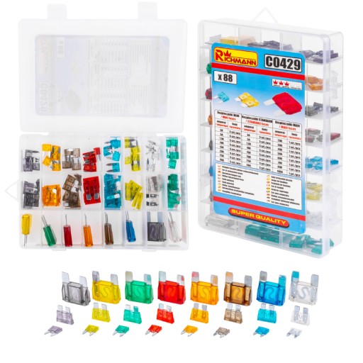 ZESTAW KOMPLET BEZPIECZNIKÓW MINI STANDARD MAXI 88 SZTUK RICHMANN C0429