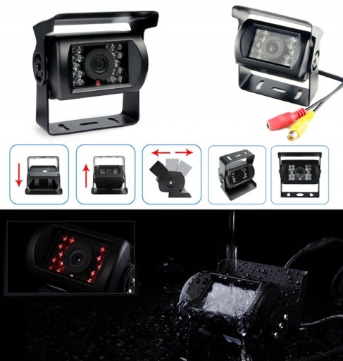 - Cztery profesjonalne kamery cofania 12/24V w zestawie