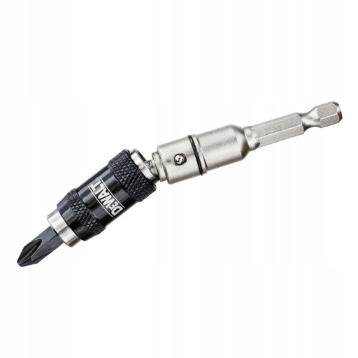W zestawie znajdziemy uchwyt magnetyczny łamany. Innowacyjna konstrukcja pozwala na wkręcanie pod kątem, nawet do 20°. Takie rozwiązanie pozwala na dotarcie w trudnodostępne miejsca przy krawędziach wewnętrznych. Konstrukcja wkrętarki czy zakrętarki już nas nie ogranicza, nie musimy już wkręcać pod delikatnym kątem, co może skutkować obrobieniem główki bita oraz wkręta. Magnetyczny adapter posiada możliwość blokady, wystarczy przesunąć tulejkę i możemy pracować jak standardowym uchwytem. Całość została wykonana w technologii FLEX TORX, co oznacza że zestaw jest przystosowany do pracy z udarem stosowanym w zakrętarkach czy kluczach udarowych.