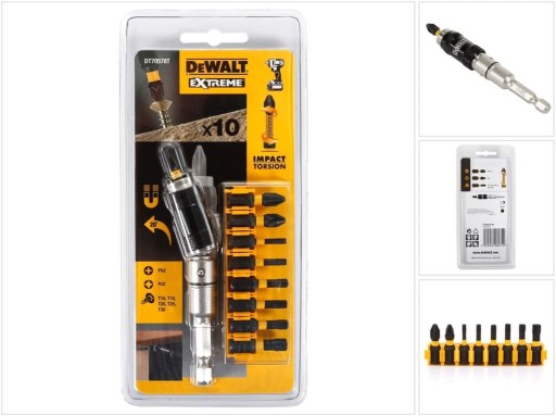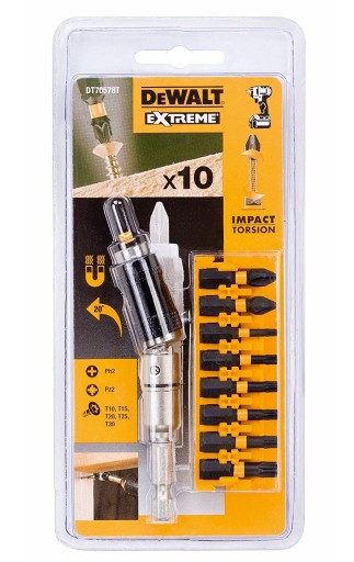 - Zestaw 10 elementowy bitów udarowych i uchwytem magnetycznym kątowym 20° DeWALT DT70578T