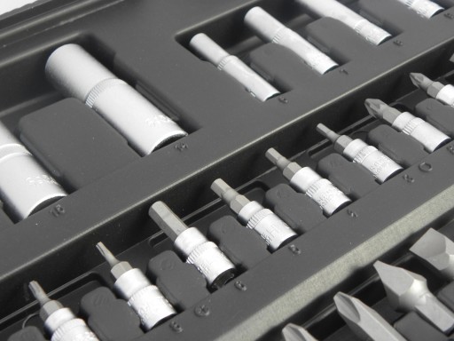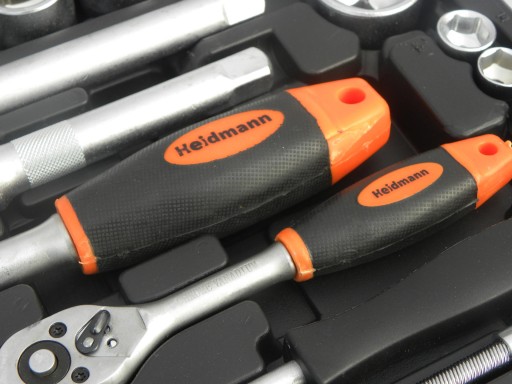 Zestaw grzechotek i kluczy nasadowych renomowanej marki Heidmann składa się z 94 elementów.