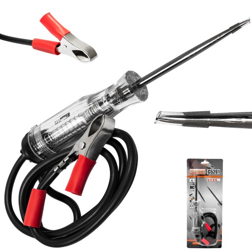 ➡️Wyposażony w przewód pomiarowy z zaciskiem uziemiającym typu "krokodylek", nasz próbnik umożliwia szybkie i bezpieczne testowanie różnych elementów pojazdu, takich jak gniazda świateł czy bezpieczniki.