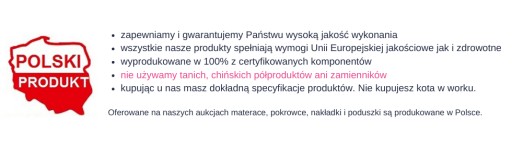 Zapewniamy państwa że jesteśmy bezpośrednim producentem pokrowców na materace. Kupując na tej aukcji możecie być pewni ze wasze zamówienie będzie wykonane w pierwszej kolejności, gwarantujemy także że dołożymy pełnych starań aby pokrowiec był wykonany w najwyższej jakości.