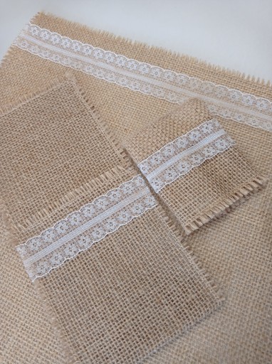 W ofercie również bieżniki jutowe na stół oraz etui na sztućce i serwetniki. w różnych wersjach