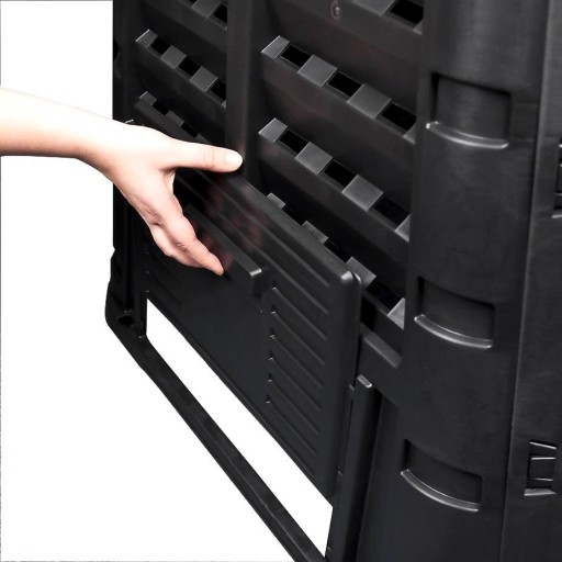 Całoroczny kompostownik zapewnia możliwość samodzielnego przygotowania wartościowego nawozu oraz utrzymania przestrzenie naturalnej w czystości bez zbędnych kosztów. Używając kompostownika oszczędza się na nawozach oraz na kosztach za wywóz odpadów przetwarzalnych. Najważniejsze cechy to: system nawodnienia kropelkowego, miejsce na kłódkę, solidne boczne zatrzaski, nawodnienie i wentylacja, wzmocnione zawiasy klapy, wygodny uchwyt, duże zasuwy z wygodnym uchwytem możliwość montażu kotew mocujących, łatwy w montażu.