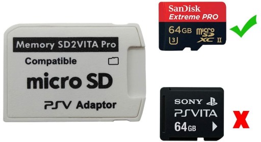 Nowy adapter SD2Vita, który konwertuje karty microSD do formatu gier z PS Vita. Jest kompatybilny z konsolami z CFW (Henkaku). Jest to najnowsza dostępna na rynku wersja adaptera (5.0). Dzięki niemu można uzyskać dostęp do treści zapisanych na karcie microSD poprzez port gier konsol PS Vita. Obsługuje wszystkie modele - Fat i Slim. Obsługuje karty microSD o pojemności aż do 256GB !!!