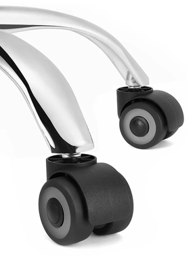 Kółka są standardowego wymiaru 50mm co sprawia, że krzesło nie staje się wyższe jak w przypadku kółek kauczukowych 75mm.