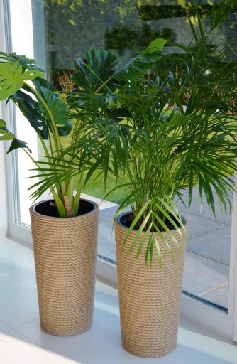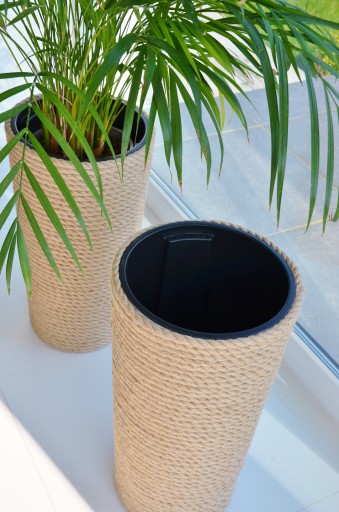- w środku z solidnego SZAREGO tworzywa sztucznego oraz czarnego wkładu, który stanowi osobną część doniczki co pozwala na łatwe i wygodne przesadzanie roślin oraz znacznie ogranicza zużycie ziemi..