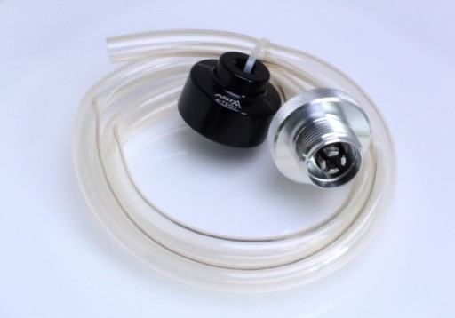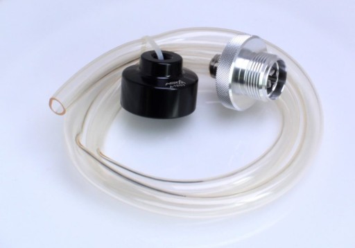 - Posiada adapter za pomocą którego po wkręceniu w filtr oleju otwiera zawór, dzięki któremu olej wypływa z obudowy filtra oleju w kontrolowany sposób przez wąż.