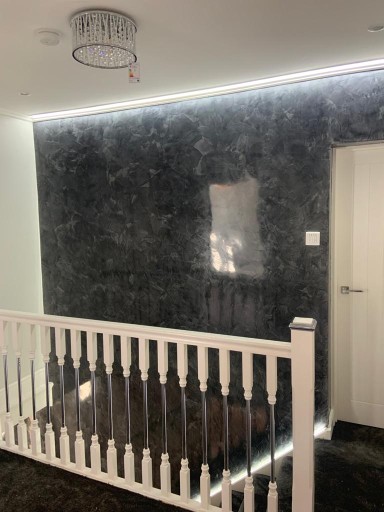 Prezentowane poniżej zdjęcia z realizacji stanowią charakter poglądowy. Finalny efekt dekoracji zależy od stopnia przygotowania powierzchni ściany ( wymagana idealnie gładka wyszpachlowana powierzchnia ), umiejętności aplikacji oraz zastosowanej techniki aplikacji.