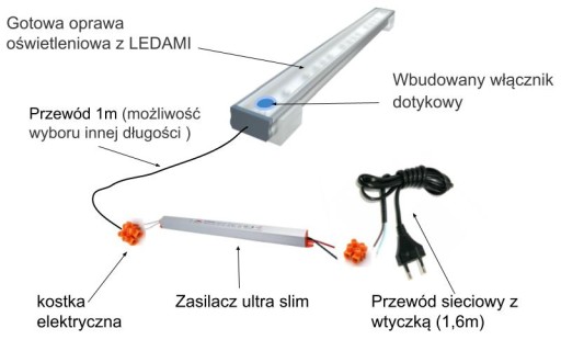 Zestawy oświetlenia kuchennego są kompletne i gotowe do podłączenia.