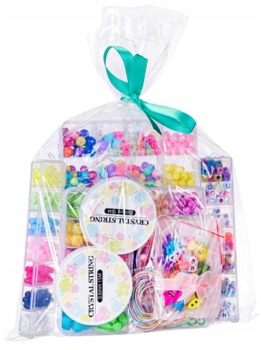 To wspaniały zestaw elementów kreatywnych dla młodej projektantki biżuterii. W skład niego wchodzą 4 organizery wypełnione po brzegi wielobarwnymi koralikami o przeróżnych kształtach i wzorach. Pośród nich urocze koraliki literki idealne do tworzenia bransoletek imiennych, oraz największy hit koraliki świecące w ciemności. Ponad to w asortymencie znajdziecie koraliki drewniane, zawieszki charms, zawieszki kolorowe, dwie rolki gumki oraz sznurki woskowane.