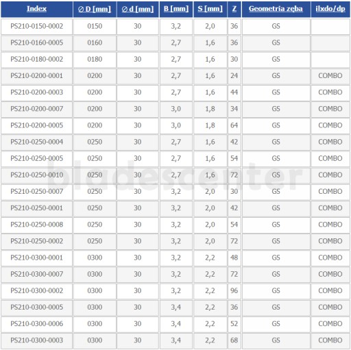 - zastosowana geometria uzębienia pozwala uzyskać optymalną jakość obróbki podczas cięcia drewna w poprzek słoi