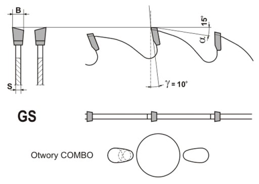 - odpowiednio dobrana geometria uzębienia oraz kształt płytki GS 10 (na przemian skośnie)