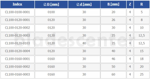 - szeroka gama typowymiarowa (średnica / szerokość węglika / promień) pozwalająca na dobór odpowiedniego narzędzia do danej obróbki oraz typu maszyny