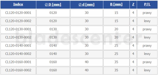 - Średnica freza (∅ D [mm]): 120